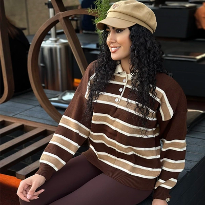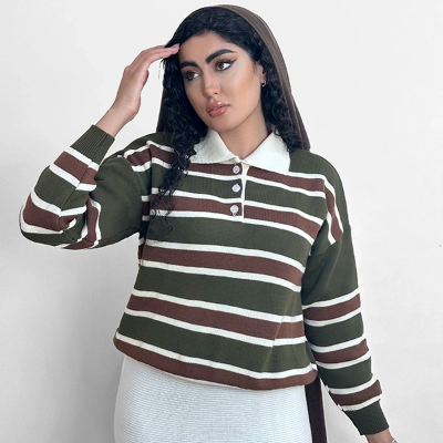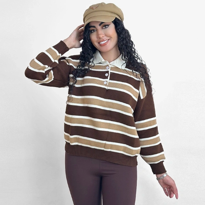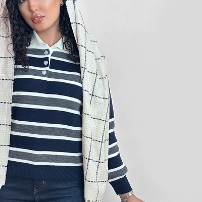 بافت آستین بلند سه دکمه طرح راه راه
