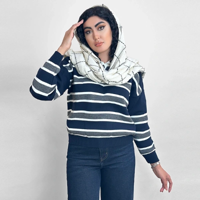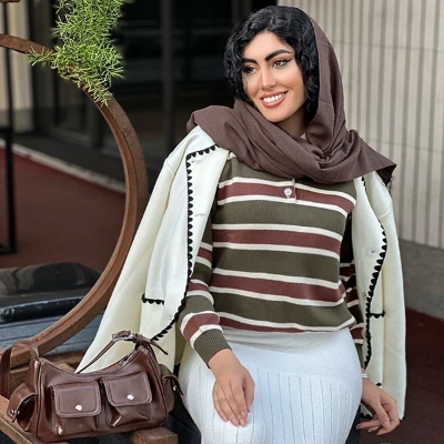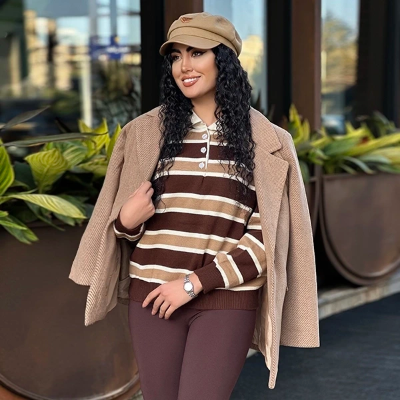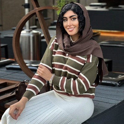 این بافت آسین بلند راه راه خیلی کاربردی و مناسب فصله چون میتونی زیر پالتوها و ترنچ کتها یا کتها و بلیزرهات بپوشیش و یک جلوهی متفاوت و شیک و کلاسیک رو به استایلت بدی. این بلوز زیبا سه رنگ جذاب داره، سبز زیتونی با راههای قهوهای، که مناسب ست زدن با رنگ سفید، کرم، شیری، قهوهای و سبز زیتونی هست. رنگ قهوهای با راههای کرم و شیری که مناسب ست زدن با رنگهای کرم،شیری وقهوهای هست و رنگ سورمه ای با راههای طوسی و سفید که مناسب ست زدن با انواع استایل جین و اسپرت و رنگهای آبی و سفید و طوسی هست.