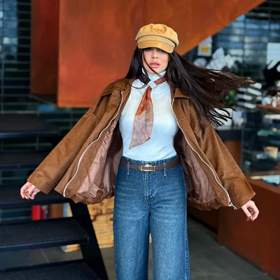 بامبرجیر زنانه مناسب فصل پاییز و زمستان. این بامبر جیر، بسیار شیک و با کیفیته و خیلی راحت با شلوار جین یا کتونی ست میشه. میدونید که امسال متریال جیر خیلی ترنده و تمام برندهای معروف توی نیو کالکشنشون آیتمای جیر زیاد دارن، ما هم براتون بهترینشو آوردیم تا از استایل زیبا و با کیفیتتون، بعد از پوشیدنش لذت ببرید. این بامبر فری سایزه و از سایز 36 تا 42 بهتون سایز میده.