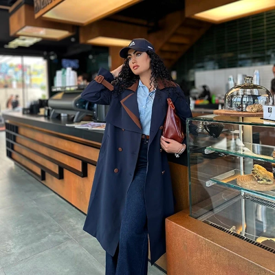 این ترنچ کت شیک و جذاب یه دونه رنگبندی خیلی شیک داره که خیلی خاص و جذابه. رنگش سرمهای بهمراه قهوهای هست که خیلی شیک و مناسب فصله. این ترنچ کت آستر داره و دوخت ظریفو باکیفیتی داره.چون زمینش سرمهای رنگه، راحت با شلوار جین ست میشه. یه کمربند هم روی کت میخوره که همین باعث شده استایلت شیکتر و متفاوتتر بنظر برسه.این ترنچ کت همچنین سایزبندی از مدیوم تا ایکس لارج داره که اندازه های دقیقش رو میتونی توی جدول راهنمای سایز مشاهده کنی. برای داشتن یه استایل پاییزه و زمستونهی شیک و جذاب این ترنچ کت باید برای تو باشه.