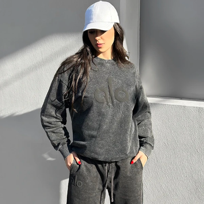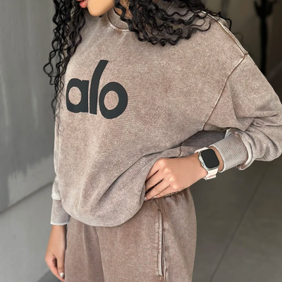ست اسپرت زنانه alo شامی هودی و شلوار.این ست جذاب واسپرت یه استایل شیک و پاییزه بهت میده که خیلی هم ترند هست.طرح سنگشور روی پارچه کار هست که اونو اسپرت تر میکنه. سایزبندی از 36 تا 42 موجوده.